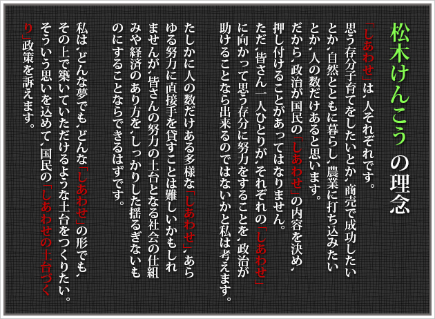 誰もが、どんな夢でも、どんな「しあわせ」の形でも、その上で築いていたけるような、そんな「しあわせの土台づくり」をつくりたいと思います。。