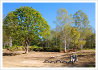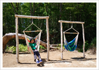 ハンモックやブランコ、シーソー、鉄棒、休憩所など。